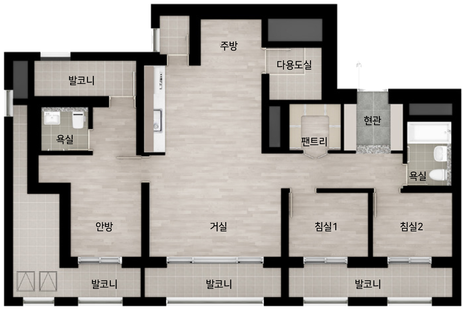 ※ 상기 평면도는 소비자의 개략적인 이해를 돕기 위한 것으로 평면, 면적, 마감재는 실제 공사 시 다소 변경될 수 있습니다.